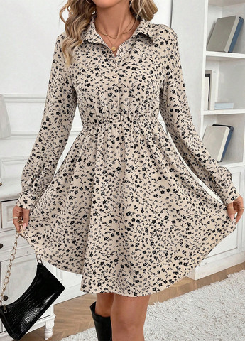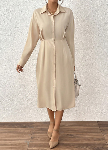 Стильное женское платье рубашка миди длины приталенного кроя на пуговицах с поясом на талии с отложным воротником, ESMARA, Германия.