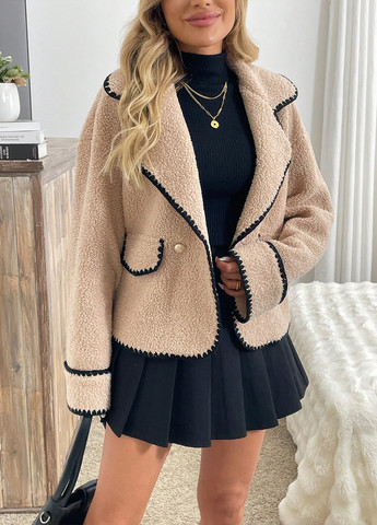 Полупальто из мягкого тедди меха станет вашим фаворитом для прохладной погоды. Укороченный крой и отложной воротник добавляют изделию стильного акцента, а накладные карманы обеспечивают практичность. Это пальто прекрасно сочетается с базовыми джинсами или монохромными спортивными костюмами, подчеркивая актуальный расслабленный стиль.