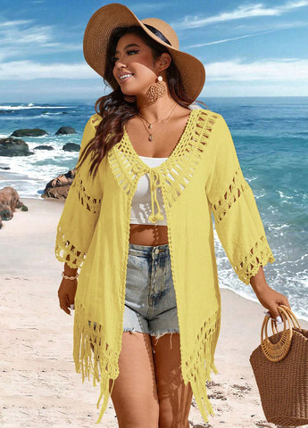 Накидка Bóhologie Boho — это женский летний пляжный предмет одежды. У неё круглый вырез горловины и длинные рукава. Она подходит для пляжа и отдыха. Изделие изготовлено из 100% акрилового трикотажа средней эластичности. Однотонный рисунок, прозрачная ткань с карманами. Рекомендуется машинная стирка.