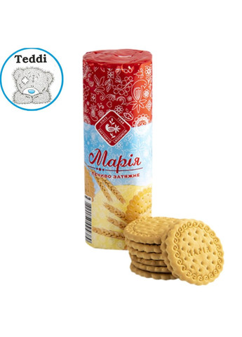 Печенье "Мария" – это классическое печенье, которое по праву можно считать диетическим. В этой печени нет ни сливочного масла, ни других ингредиентов, способствующих набору лишнего веса. Выполнено с натуральным сахарозаменителем (фруктозой) Состав: мука пшеничная высшего сорта, фруктоза 10,7%, жир шортенинг (масла и жиры растительные рафинированные отбеленные дезодорированные: масло пальмовое и его фракции, масло подсолнечное в переменных проториях,3 Е4,3 (Е306)), ячменно-солодовый экстракт (солод ячменный, вода), крахмал кукурузный, сыворотка молочная сухая, соль поваренная, разрыхлители: гидрокарбонат аммония, гидрокарбонат натрия; яичный порошок, ароматизатор ваниль, антиоксидант пиросульфит натрия (содержит консервант двуокись серы и сульфиты). Информация об аллергенах: содержит пшеницу, ячмень, яичные и молочные продукты, двуокись серы и сульфиты. Может содержать следы: продуктов переработки сои, ржи. Питательная ценность на 100g(г) продукта: жиры – 9,8g(г); из них насыщены – 4,1g(г); углеводы – 72,0g(г), из них сахара – 16,1g(г); пищевые волокна - 2,7g(г); белки – 8,2g(г); соль - 0,7g(г). Энергетическая ценность 100g(г) продукта – 415kcal(ккал)/1748kJ(кДж). Условия хранения хранить при t(18±5)ºC и относительной влажности воздуха не выше 75%. Содержание общего сахара в пересчете на сахарозу (кроме фруктозы) – 5,4g(г). Допустимая суточная норма потребления фруктозы - не более 45,0g(г) в сутки. Рекомендации по потреблению: по результатам клинических исследований ГУ Института эндокринологии и обмена веществ им. В.П.Комиссаренко НАМН Украины” рекомендовано больным сахарным диабетом 1 и 2 типа употреблять за 1 прием пищи 1 хлебную единицу (17 g(г) или 3,2 шт.). печенья). В сутки рекомендуется употреблять 2 хлебные единицы (34 g(г) или 6,4 шт.). печенья). Срок хранения -12 месяцев