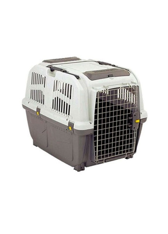 Хотите безопасно летать на самолете со своей собакой? Ищете прочную транспортировочную клетку, соответствующую требованиям IATA? Удобный транспортный бокс Moderna Gateway Jumbo выручит вас при необходимости путешествия с домашним питомцем, при этом он максимально соответствует международным нормам перевозок животных IATA в багажных отделениях самолетов и другом транспорте. Модерна Гэйтвей Джумбо гарантирует поездку с минимальным стрессом и полной безопасностью для собак весом не более 31 кг. Жесткая конструкция корпуса изготовлена из прочного пластика, на 98% состоящего из переработанного сырья. Корпус собирается из двух идентичных частей при помощи защелок, соединение фиксируется металлическими болтами с гайками (крепеж входит в комплект). Все углы внутри бокса широко закруглены в целях безопасности. В крышке бокса имеются множественные вентиляционные отверстия, расположенные на 3-х боковых сторонах по периметру и обеспечивающие отличный приток воздуха внутрь бокса, а также удовлетворяющие требованиям IATA о 4-сторонней вентиляции. Отверстия специально выполнены не слишком большими, чтобы ваш питомец не мог просунуть в них нос или лапу и пораниться при транспортировке. Внутренняя центральная часть дна транспортного бокса Модерна Гэйтвей Джумбо немного приподнята и изготовлена со специальным рельефом, который препятствует скольжению лап собаки. Углубления дна у дверцы и задней стенки обеспечивают защиту от протекания и помогают обеспечить сухость вашего питомца во время длительного путешествия. Фронтальная дверь ограждена стальной решеткой, на которой установлен металлический пружинный замок, полностью исключающий случайное открытие. Дверь можно устанавливать с правым или левым открытием. По центру решетки сверху и снизу имеются широкие пазы, которые служат для предания дополнительной жесткости и безопасности конструкции. При закрытии дверей необходимо, чтобы эти части решетки совместились с соответствующими «полочками» на корпусе и зафиксировались за ограничителями. Это дополнительный уровень безопасности от давления извне, который не позволит решетке при возможном ударе травмировать собаку, закрытую внутри бокса. Стоит отметить, что производитель позиционирует Moderna Gateway Jumbo именно как транспортный бокс для собак, а не как переноску для питомца. Вес бокса в сборке составляет 10 кг. Для удобства транспортировки бокса имеются 2 пары встроенных ручек, расположенные с противоположных боков корпуса по линии сборки верхней и нижней части, а также пара съемных роликовых колес, которые монтируются в специальные пазы на дне. Колес только 1 пара и располагаются они под задней стенкой. Сверху и снизу двери на корпусе предусмотрены ручки для перемещения и корректировки положения бокса в стационарном состоянии. В помещении вы можете снять дверцу, положить внутрь мягкую подстилку и предоставить бокс собаке в качестве спального места, чтобы питомец мог привыкнуть к нему как минимум за 8 недель до путешествия.