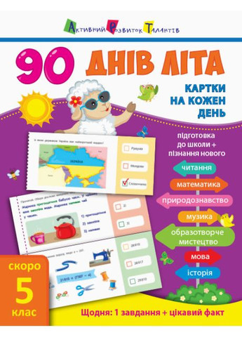 Теперь не нужно уговаривать ребенка заниматься летом! С книгами «90 дней лета» можно через несколько минут в день повторить школьный материал за предыдущий класс и расширить кругозор. Узнайте новое об украинской и мировой культуре, архитектуре, истории, науке, искусстве. Обработка одной карты займет не более 5 минут в день. Как следствие – ребенок повторит изученное и узнает много нового.