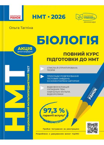 Пособие предназначено для эффективной подготовки к национальному мультипредметному тесту (НМТ) по математике. Издание представляет собой справочник, охватывающий весь школьный курс математики. К каждой теме приведены краткие итоги и тренировочные упражнения, а также ответы на упражнения, в электронном приложении предложены тренировочные тесты в формате НМТ, которые можно выполнить в онлайн-режиме. Кроме того, пользователи смогут пройти пробное тестирование. Пособие поможет системно обновить и углубить знания по математике. Предназначено для выпускников заведений общего среднего образования, абитуриентов, учителей математики. Математика является одним из предметов, тестирование по которому обязательно в рамках национального мультипредметного теста (НМТ). Предлагаем вашему вниманию руководство, созданное, чтобы помочь тем, кто будет выполнять НМТ. Издание содержит полный курс математики по действующей программе внешнего независимого оценивания и тренировочные упражнения по каждой теме, а также ответы на них. Пособие станет помощником и для учителей и для учащихся во время подготовки к НМТ; кроме того, с его помощью будущие участники тестирования могут готовиться к испытанию самостоятельно. При тестировании учащиеся должны продемонстрировать знания и умения: выполнять математические расчеты (действия с числами, представленными в разных формах, действия с процентами, приближенные вычисления и т.п.); преобразовывать числовые и буквенные выражения (упрощать выражения и вычислять значения числовых выражений, находить числовые значения выражений при заданных переменных и т.п.); исследовать свойства функциональных зависимостей; находить производную и интеграл; применять общие методы и приемы в процессе решения уравнений, неравенств и их систем, в частности с параметрами, анализировать полученные решения и их количество; находить количественные характеристики геометрических фигур (длины, углы, площади, объемы); выполнять операции с векторами; решать комбинаторные задачи и вычислять вероятность случайных событий; анализировать информацию, представленную в графической, табличной, текстовой формах. При подготовке к тестированию обратите внимание на то, что недостаточно владеть программным материалом, нужно уметь его применять. Поэтому обязательно выполните предложенные тренировочные задания, затем – тренировочные тесты, размещенные в электронном приложении к пособию, а в конце пройдите пробное тестирование. Чтобы выяснить, насколько вы готовы к испытанию, предлагаем воспользоваться другим пособием серии, содержащим 10 тестовых блоков по математике в формате НМТ с ответами на все задачи и основные теоретические сведения в виде таблиц и схем.