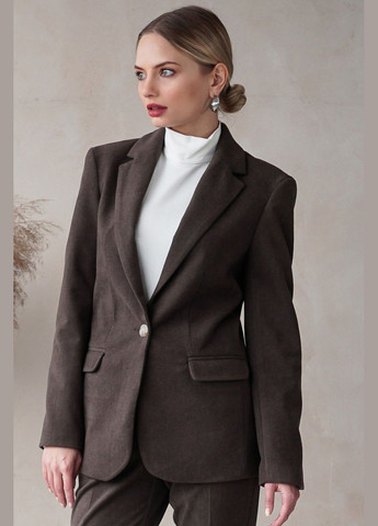 Элегантный удлиненный пиджак LadyLike – это сочетание классического стиля и комфорта. Модель с подкладкой выполнена из мягкой костюмной ткани с узором "елка", что придает образу изящества и шарма. Благодаря прямому крою пиджак красиво сидит на фигуре и легко сочетается как с брюками, так и с юбками. Основные характеристики: Цвет: коричневый в узор "елочка" - теплый оттенок с классическим рисунком. Крой: прямой, удлиненный – создает утонченный силуэт и комфорт в движении. Воротник: английский отложный с лацканами - придает классический вид. Застежка: однобортная, на одну пуговицу. Рукав: длинный, удобно посажен по плечу. Карманы: накладные с клапанами — практичные и стильные одновременно. Ткань костюмная. Состав: 60% шерсть, 37% вискоза, 3% эластан – теплый, мягкий и слегка эластичный материал. Подкладка: вискоза – обеспечивает комфорт и приятные ощущения во время ношения. Эластичность ткани: чуть-чуть тянется. Особенности: с карманами, прямой и широкий крой, застежка на пуговицу. Бренд: LadyLike (Украина). Как носить Такой пиджак станет базовым элементом осеннего или весеннего гардероба. Его можно носить с классическими брюками, юбками-карандашом или джинсами. Для офисного образа дополните рубашкой и туфлями, а для кэжуального – футболкой и кроссовками. Идеальный выбор для стильных женщин, ценящих тепло, комфорт и изысканность.