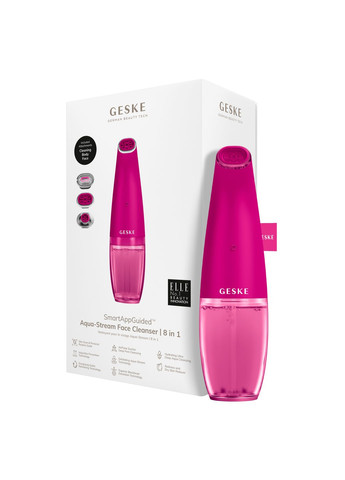 Усовершенствуй свой ритуал очищения кожи с уникальным и мощным Aqua-Stream Face Cleanser | 8 в 1. Универсальное отмеченное наградами суперустройство не только очищает твои поры и предотвращает появление загрязнений, но и умело удаляет черные пятнышки и увлажняет красную и сухую кожу. Приготовься оживить свою кожу с помощью несравненного отшелушивающего водного сеанса ухода. Очищай кожу как никогда раньше, заряжай ее энергией и увлажняй с помощью инновационного Aqua-Stream Face Cleanser 8 в 1. Простись с черными пятнышками и загрязнениями навсегда, ведь AirPulse Suction Deep Pore Cleansing очищает свои поры от всего нежелательного. Увлажняй и защищай кожу из Aqua-Stream Solution. Почувствуй сияние своей кристально чистой кожи, что станет сильнее, гладкее и ярче. Aqua-Stream Face Cleanser 8 в 1 с тремя различными насадками и набором несравненных очистительных и отшелушивающих функций направлен на следующие потребности кожи: Гигиена Сияние кожи Тонизация Загрязнение Жирная кожа Текстура Мелкие морщины Aqua-Stream красоты: Skin Scan & Personal Routine Guide, работающий на основе передовой технологии ИИ и гарантирующий максимальную пользу от твоего устройства AirPulse Suction Deep Pore Cleansing, мягко и глубоко удаляет загрязнение с твоих пор. Hydrating Ultra Deep Aqua Cleansing барьера твоей кожи против нежелательных загрязнений Superior Blackhead Extraction Technology, что эффективно очищает кожу от черных точек Exfoliating Aqua-Stream Technology для удаления загрязнений мощной струей воды Energizing Hydra Refreshing Technology успокоение воспаленной и обезвоженной кожи и возвращение ей природного сияния С Aqua-Stream Face Cleanser | 8 в 1 ты можешь не только увлажнить, очистить и отшелушить кожу всего лица, но и шею и декольте. Чтобы получить мгновенный доступ ко всем сеансам вместе с обучающими видеоматериалами и персонализированными рекомендациями, загрузи бесплатное приложение GESKE. Мощный алгоритм приложения на основе передовой технологии ИИ анализирует твою кожу и рекомендует идеально отвечающие ее потребностям устройства. Установи свои цели по уходу за кожей в соответствии с ее потребностями и проходи тысячи обучающих видеосеансов, чтобы получить максимальную пользу от своего устройства. Наблюдай за тем, как твоя кожа постепенно и заметно приобретает совершенство с GESKE. Очистка кожи никогда не будет такой, как раньше, вместе с Aqua-Stream Face Cleanser 8 в 1 от GESKE – инновацией № 1 в мире красоты по версии ELLE. Используй преимущества многогранных возможностей. Такой чистой, яркой и мягкой кожи у тебя еще не было.
