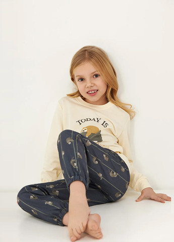 Yamamay Пижама (домашний костюм) молочная с розовыми брюками для девочки (Италия) Приятная к телу, качественная натуральная хлопчатобумажная ткань. Реглан свободного кроя с качественным принтом Брюки широкого кроя на широкую резинку Состав: реглан – 35% хлопок, 65% полиэстр (трикотаж), штаны – 80% хлопок, 20% полиэстр