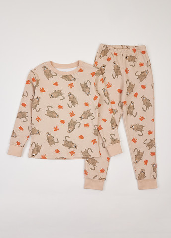 Цвет Бежевый / Материал Хлопок, Интерлок / Узор Рисунок / Фасон рукава Вшитый