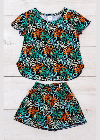 Футболка: 32 размер: ПОГ – 32см, ДИ – 46см. 34 размер: ПОГ – 34см, ДИ – 50см. 36 размер: ПОГ – 36см, ДИ – 54см. 38 размер: ПОГ – 38см, ДИ – 58см. 40 размер: ПОГ – 42см, ДИ-62см. Шорты: 32 размер: ПОБ – 36см, ДБШ – 23см. 34 размер: ПОБ – 37см, ДБШ – 24см. 36 размер: ПОБ – 39см, ДБШ – 25см. 38 размер: ПОБ – 41см, ДБШ – 26см. 40 размер: ПОБ – 43см, ДБШ – 27см. ПОГ – полуобхват груди, ДИ – длина изделия, ПОБ – полуобхват бедер, ДБШ – длина бокового шва.