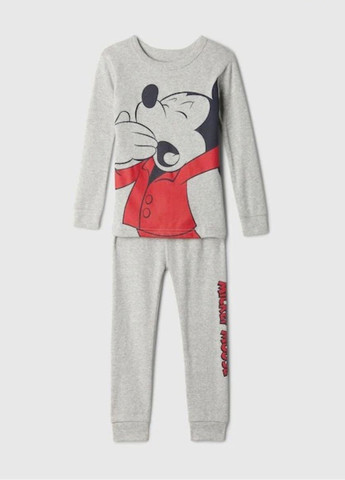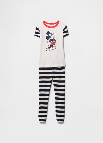 Детская пижама Mickey Mouse Gap. Красивая и удобная пижама от коллаборации GAP и Disney состоит из футболки и штанов. Футболка с круглым контрастным вырезом. Короткие рукава в полоску. Спереди принт  - Mickey Mouse от Disney. Штаны-джоггеры с эластичным поясом и принтом в полоску. Внизу штанин манжеты. Ткань - мягкий трикотаж из органического хлопка. Отличное качество.