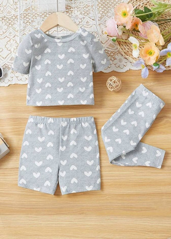 Цвет Серый / Материал Хлопок / Узор Сердечки / Фасон рукава Вшитый