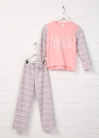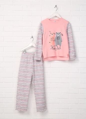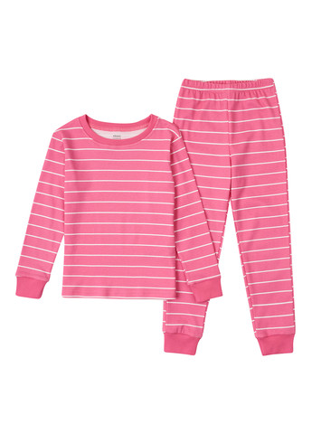 Мягкие пижамы из хлопкового трикотажа. Лонгсливы с длинными рукавами, пуговицей на одном плече, манжетами в рубчик. Низ с заправленной резинкой на талии, ребристая посадка на брючинах. В наборе 2 пижамы.