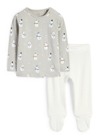 кешбэк от 3 ₴-45%390 ₴674 ₴371 ₴Акция:1 день, 06:29:17Бесплатная доставка сC&A пижама (лонгслив, брюки) лонгслив + брюки с рисунком комбинированная домашний хлопок, трикотаж производство — Германия74смЦвет Комбинированный / Материал Хлопок, Трикотаж / Узор Рисунок / Фасон рукава Вшитый