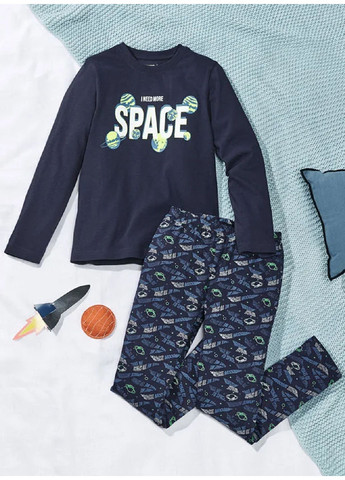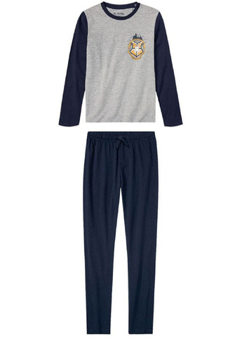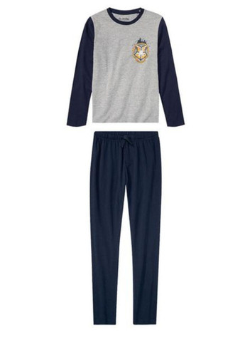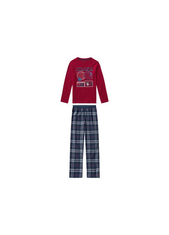 Домашний костюм-пижама выполнен из хлопкового полотна. Лонгслив трикотажный, горловина обработана бейкой, предотвращающей растяжение и деформацию; украшен принтом. Брюки фланелевые, по линии талии на резинке с регулируемым шнурком, внизу на трикотажных манжетах. Изделие устойчиво к многократным стиркам.