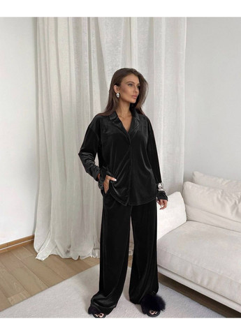 Мягкий бархатный костюм, состоящий из: Топа Свободных штанов Легкая рубашка Резинки для волос в тон Идеальный для домашнего отдыха – стильный, удобный и женственный ❤️ Размеры: 42-46, 48-50 Цвета: шоколад, бордо, черный Ткань: бархат