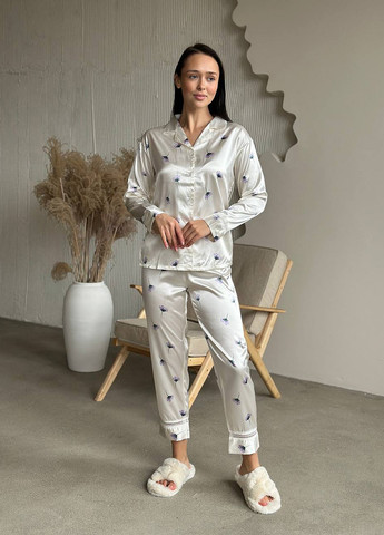 Цвет Серый / Материал Полиэстер, Атлас / Узор Рисунок / Фасон рукава Вшитый