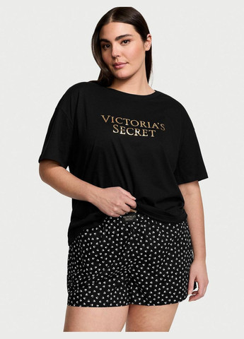 Впереди сладкие сны. Укутайтесь в удобную пижаму из чистого хлопка. В комплекте верх и низ Легкая посадка Футболка с коротким рукавом оверсайз Шорты-боксеры с эластичным поясом Машинная стирка