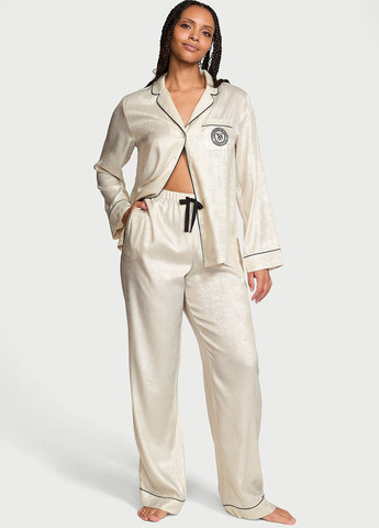 Этот комплект в классическом стиле сочетает комфорт и утонченность. Изготовлен из гладкого атласа, который приятно ощущается на коже и имеет легкий шелковистый блеск.
