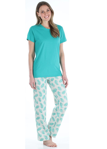 Цвет Бирюзовый / Материал Хлопок / Узор Рисунок / Фасон рукава Вшитый