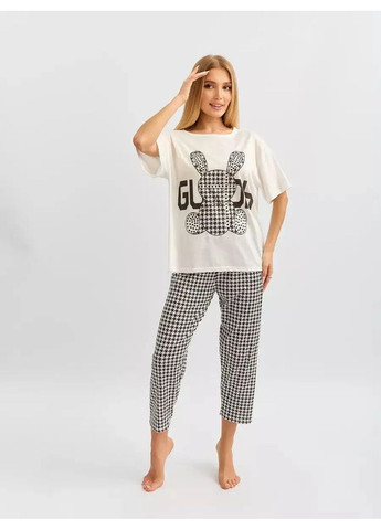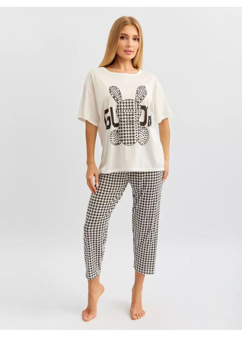 Женская бамбуковая пижама 3 в 1 с принтом Minnie - женский набор для дома и сна (штаны, шорты, футболка), в универсальном размере, белый цвет.