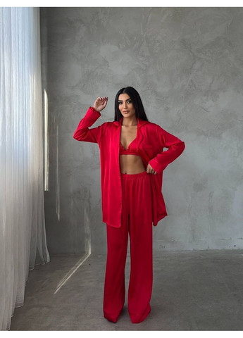 Домашний комплект тройка. Состоит из рубашки, топа, брюк. Ткань – велюр бархат. Свободный крой, приятный на ощупь материал – прекрасное сочетание изысканности и абсолютного уюта. Идеальный домашний наряд.