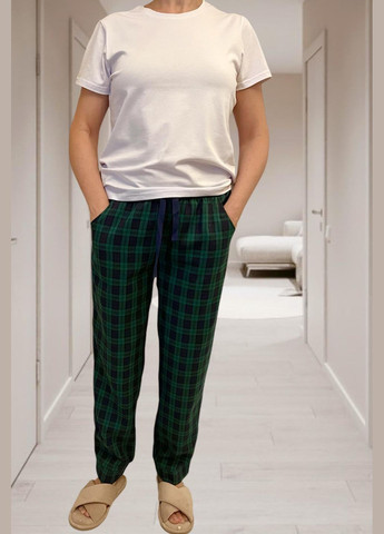Женские брюки с фланели в зелено-синюю клеточку – это сочетание стиля и комфорта. Они имеют удобный прямой крой, идеально подходящий для повседневной носки. Функциональные карманы придают практичности, а эластичный пояс на резинке с регулируемой кулиской позволяет легко подогнать штаны под себя. Несмотря на свою легкость, брюки отлично согревают благодаря мягкому начесу изнутри. Эти брюки станут твоим любимым вариантом для холодных вечеров, придавая образу немного элегантного уюта. Идеальны для тех, кто любит выглядеть стильно даже в комфортной одежде. Ткань фланель: Хлопок 70%, полиэстер 30%, Турция Плотность: 150 г/м2 Цвет: клетка зелено-синяя Эффект: легкий начес с внутренней стороны