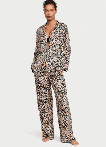 Цвет Коричневый / Материал Искусственный шелк / Узор Леопардовый / Фасон рукава Вшитый