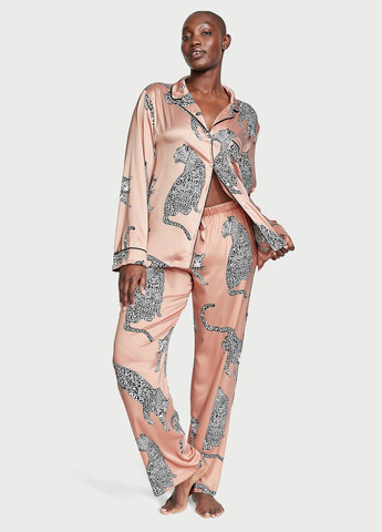Пижамный комплект из искусственного шелка с леопардовым принтом – это воплощение роскоши и комфорта в одном образе. Легкая, приятная к телу ткань мягко окутывает кожу, создавая чувство нежности и прохлады. Классическая рубашка с длинным рукавом, воротничком и пуговицами выглядит стильно и удобно для ежедневного ношения дома. Брюки прямого кроя с эластичным поясом обеспечивают комфорт и свободу движений. В комплект также входит пояс, который придает акцент силуэту и позволяет носить рубашку как легкий халат. Яркий леопардовый принт придает образу игривости и женственности. Этот комплект идеально подходит как для сна, так и для уютного отдыха дома, а также стильный вариант домашнего наряда