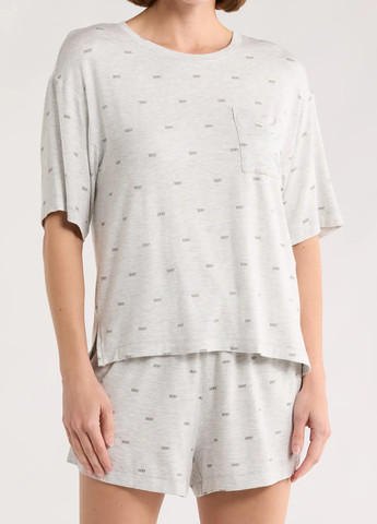 Женская пижама DKNY. Женская пижама DKNY включает в себя футболку и шорты. Футболка с круглым вырезом и короткими рукавами. Один нагрудный карман. Шортики с широким эластичным поясом на завязках. Два кармана по бокам. Легкая и мягкая ткань, приятная к телу. Принт в виде логотипа бренда. Отличное качество.