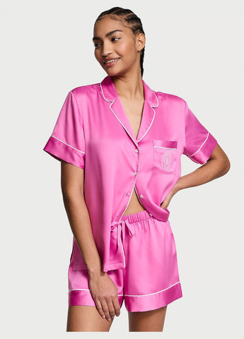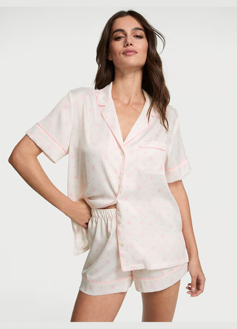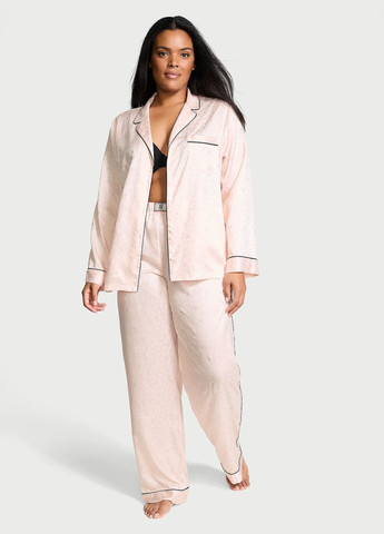 омплект из рубашки с длинным рукавом и штанишек свободного кроя из модала - мягкого и удобного материала, невероятно нежного на ощупь. Пижама в черном цвете с принтом в форме логотипа. Рубашка имеет нагрудный карманчик и фирменные пуговицы. Брюки на резинке и дополнительно завязываются на шнурочках.
