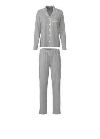 Трикотажная пижама из рубашки на пуговицах и брюк прямого кроя.
