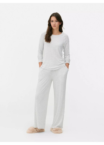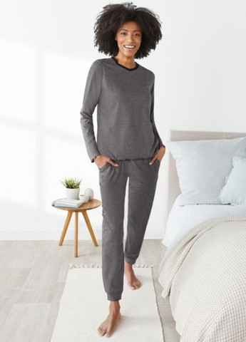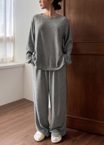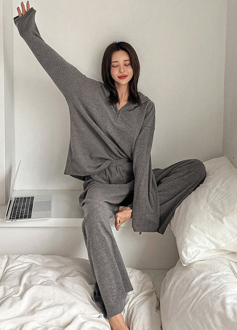 Пижамный комплект DAZY Minimalist – серый. Этот пижамный комплект свободного кроя состоит из двух предметов. Верхняя часть – лонгслив с длинными рукавами. Штаны – свободного кроя. Комплект изготовлен из трикотажной ткани на основе полиэстера, вискозы и эластана. Рекомендуется ручная стирка или профессиональная химчистка.