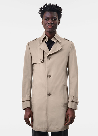 Короткий плащ-тренч, relaxed fit из технической ткани. Воротник с лацканами из вельвета в тон. Длинные рукава с регулируемыми манжетами на кнопке. Накладные карманы спереди. Внутренний карман. Аппликации с вышивкой и вышивкой Champion®. Застежка спереди на молнию, скрытую планкой на кнопках.