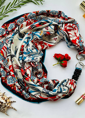 Лёгкий патриотический атласный платок внесёт свежесть и лёгкость в ваш образ. Данный аксессуар позволит вам выглядеть в одном и том же наряде совершенно по-разному. Поверхность изделия мягкая и шелковистая, приятная к телу. Размер платка достаточно большой 90х90 см., что позволяет создавать разные образы. Также такой стильный атласный платок станет отличным подарком на любой праздник.