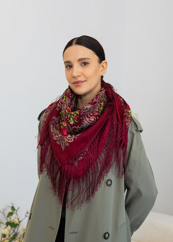 Такой замечательный платок внесёт свежесть и лёгкость в Ваш образ. Данный аксессуар позволит вам выглядеть в одном и том же наряде совершенно по-разному, а цветочный принт вносит романтизма, делает лук нарядным и даже праздничным. Поверхность изделия мягкая и шелковистая, приятная к телу, по краям изделия бахрома. Размер платка достаточно большой 96х96 см., что позволяет создавать разные образы. Его можно носить везде: в офис, ресторан, на прогулку, в церковь. Также такой платок станет отличным подарком на любой праздник.