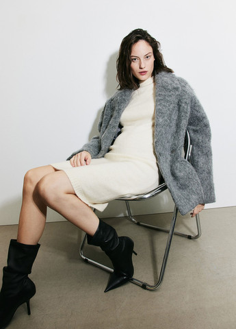 Облегающее фигуру платье из джерси длиной до икры. Асимметричный вырез горловины, притачной запах спереди и сзади, сборка на плечах, создающая эффект ажурной драпировки. Длинные рукава, сборка по бокам для идеальной посадки на животе. Прямой крой по низу и разрез сбоку. Замеры для размера М: ПОГ-44 см, длина-120 см, вес-375 г. Возможно повреждение бирки.