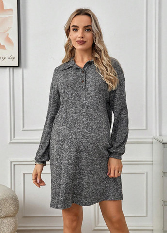 Платье для беременных SHEIN: закругленный дизайн спереди, облегающий силуэт, карандашный низ, круглая горловина. Изготовлен из эластичного трикотажа для комфорта.