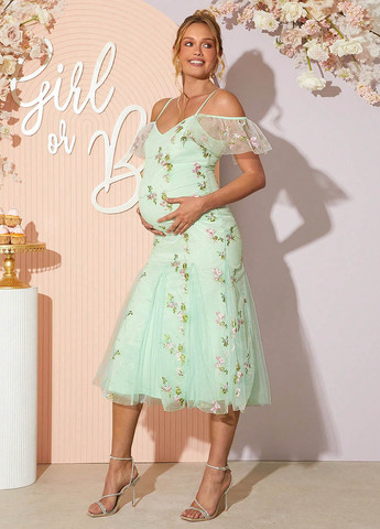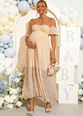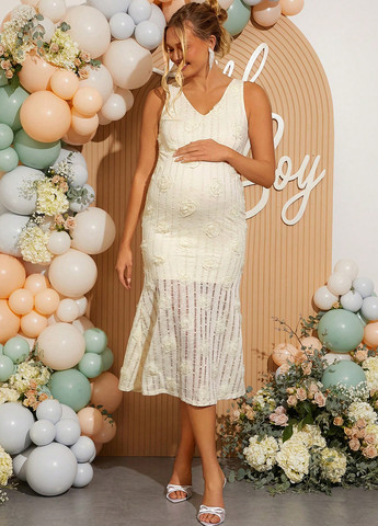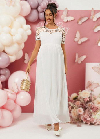 Платье для беременных белого цвета. Это платье с А-силуэтом и высокой талией, подчеркивающим фигуру. Оно изготовлено из 100% полиэстерового шифона. У платья короткие рукава и длинная юбка. Завязывается сзади и украшено бантом спереди. Платье подходит для различных случаев, включая повседневные прогулки и торжественные мероприятия. Рекомендации по уходу: ручная стирка или профессиональная химчистка.