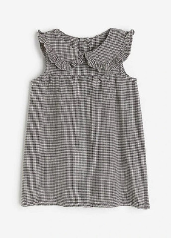 Платье без рукавов из твила с большим воротником с оборками, пуговицами сзади на шее и присборенным швом сверху.