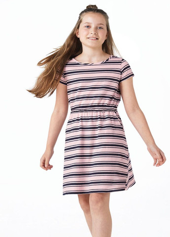Платье на девочку в полоску бренда Pepperts. Круглый вырез горловины, в талии резинка, по бокам карманы. Короткие рукава. Естественный комфорт благодаря натуральному хлопку. Легкий и качественный трикотаж.