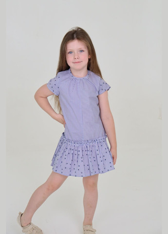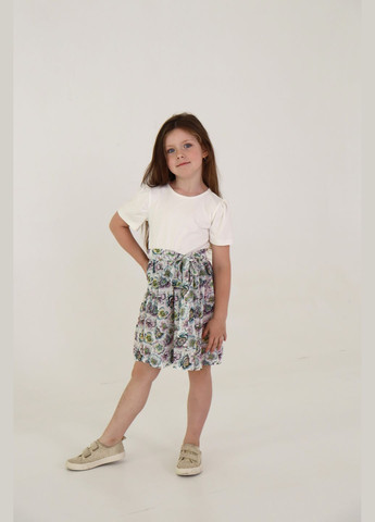 Простое детское летнее платье из натуральной ткани с коротким рукавом. Верх трикотажный, низ юбочка с цветочным принтом