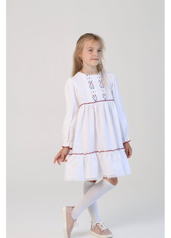 Детское хлопковое вышитое платье Карпатская красная Piccolo белая узор-геометрический хлопок
