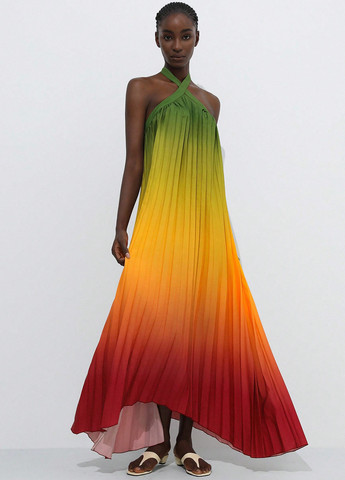 Элегантное женское платье без рукавов Islaluna. Это платье с завышенной талией и удлиненным кроем выполнено из ткани, состоящей на 95% из полиэстера и на 5% из эластана. Платье полупрозрачное, с однотонным принтом по всей поверхности. Оно имеет тонкие бретельки, оборку по низу и сборку на груди. Подходит для свадеб и праздничных случаев, таких как Рамадан, Ид аль-Адха и Ид аль-Фитр.