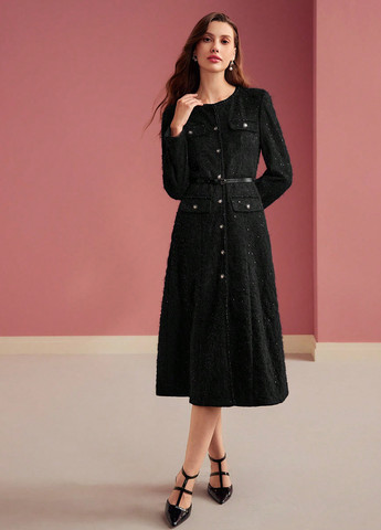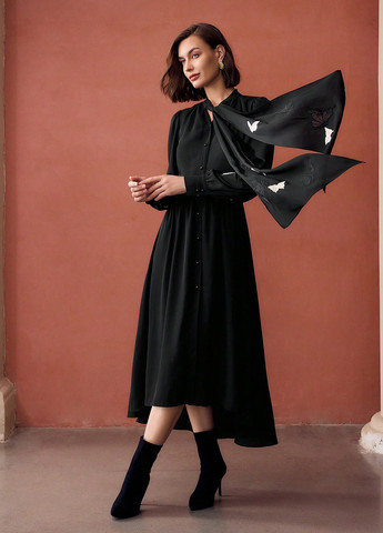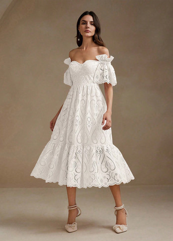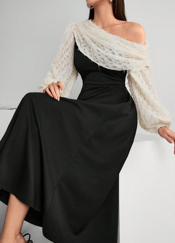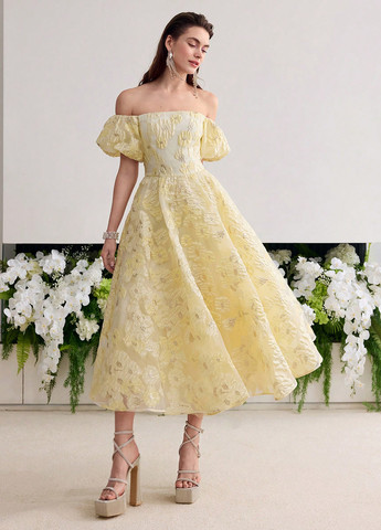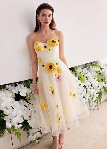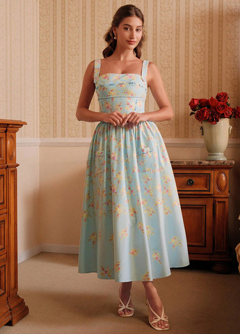 Это платье миди с квадратным вырезом и высокой талией, подчеркивающей фигуру. Платье изготовлено из трикотажного полотна с набивным рисунком по всей поверхности. Оно облегающего кроя и длины миди. Платье дополнено оборкой по низу и разрезом. Оно подходит для официальных и вечерних мероприятий, включая такие праздники, как Рамадан, Ид аль-Адха и Ид аль-Фитр. Платье изготовлено из 100% полиэстера. Можно стирать в стиральной машине или использовать профессиональную химчистку.