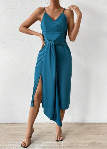 Материал Полиэстер / Цвет Темно-бирюзовый / Фасон На запах / Длина изделия Миди и ниже колена / Стиль Кэжуал