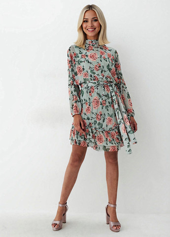 Платье с воротником-стойкой.