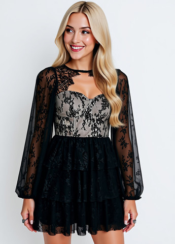 Материал Кружево, Полиэстер / Цвет Черный / Фасон Клеш / Длина изделия Мини / Стиль Кэжуал
