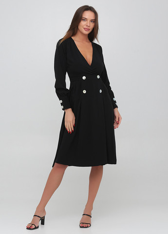 Платье с V - образным вырезом горловины, резинка сзади на талии. Длинные рукава.