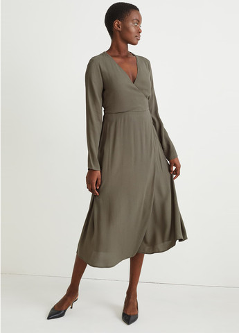 Материал Вискоза / Цвет Хаки / Фасон На запах / Длина изделия Миди и ниже колена / Стиль Кэжуал