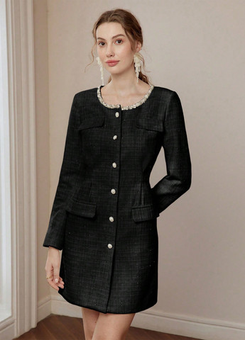 Материал Полиэстер / Цвет Черный / Фасон Футляр / Длина изделия Миди и ниже колена / Стиль Кэжуал