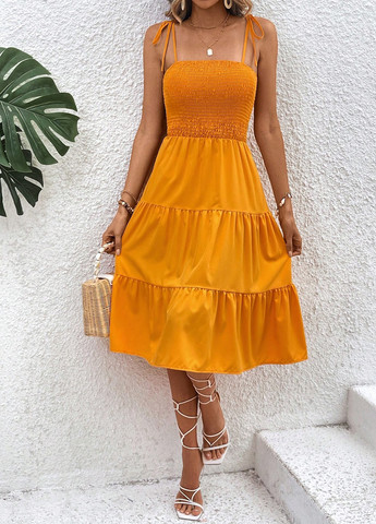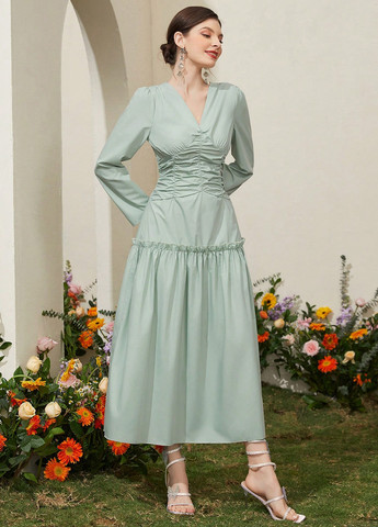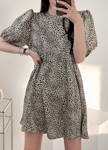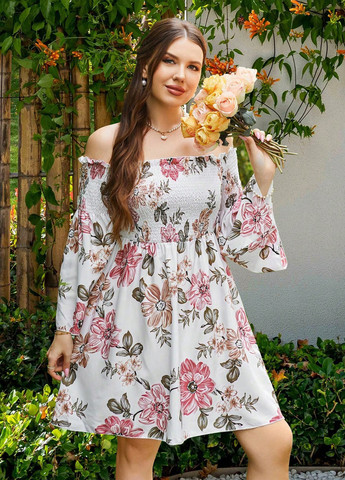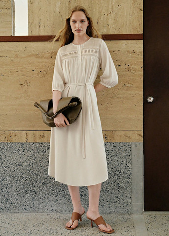 Вшитые пышные рукава буфы 3/4 позволяют использовать наряд летом, осенью и весной.